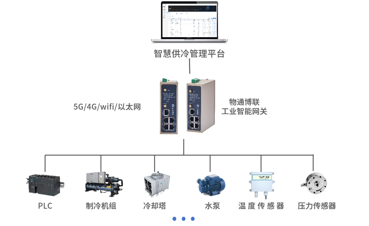借助物通博聯(lián)的工業(yè)智能網(wǎng)關(guān),實時采集供冷系統(tǒng)中制冷機組、冷卻塔、水泵等設(shè)備的運行數(shù)據(jù),包括溫度、壓力、流量、功率等。同時,采集室內(nèi)外環(huán)境溫度、濕度以及不同區(qū)域的冷量需求數(shù)據(jù)。將采集到的數(shù)據(jù)傳輸至智慧供冷管理平臺,平臺通過數(shù)據(jù)分析和算法模型,預(yù)測不同時間段和區(qū)域的冷量需求,優(yōu)化設(shè)備運行參數(shù),實現(xiàn)設(shè)備的智能控制。當(dāng)設(shè)備出現(xiàn)異常或可能發(fā)生故障時,及時發(fā)出預(yù)警并提供故障診斷和處理建議。此外,平臺還具備能耗成本核算功能,為用戶提供詳細的能耗報告和成本分析,以便進行成本控制和節(jié)能決策。