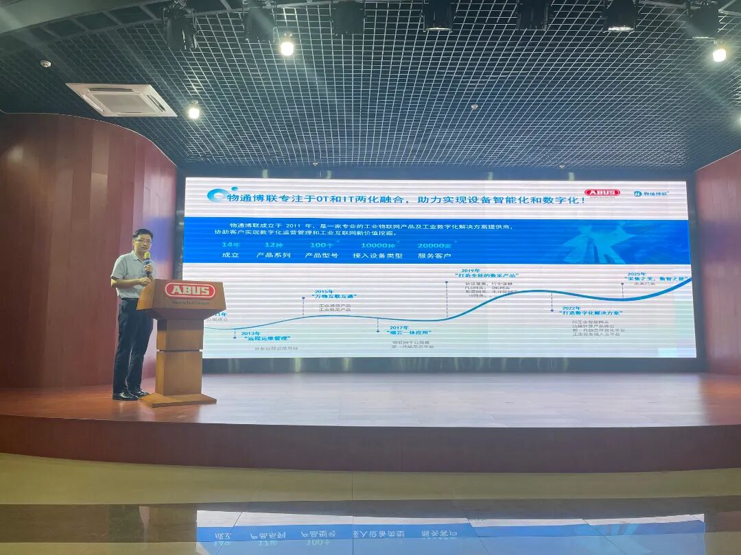 會上,劉明德總經理圍繞物通博聯在工業物聯網領域的技術積累、項目經驗展開詳細介紹,并針對本次萬暉五金設備數據采集項目的具體規劃、核心技術方案、實施團隊配置及全流程運維保障進行了全面闡述。從項目啟動后的需求落地、設備接入,到數據采集、分析應用,再到后期持續運維服務,每一個環節的部署都清晰明確,讓在場嘉賓對項目的順利推進與成功落地充滿信心。