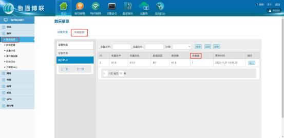 等待右下角彈出成功提示框后,點擊“數采信息”->“變量數據”,即可在“變量值”一列查看采集結果。