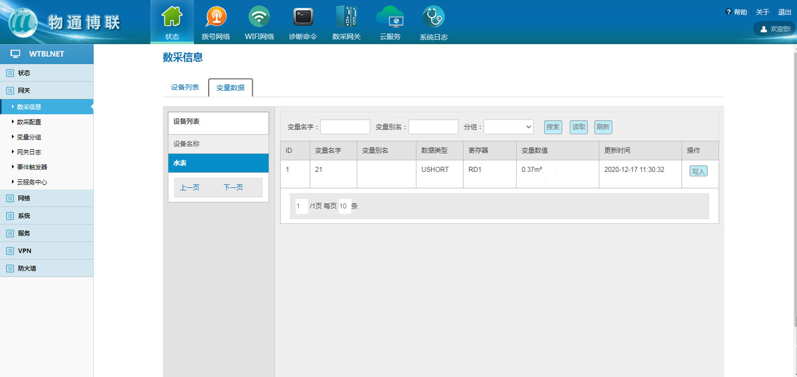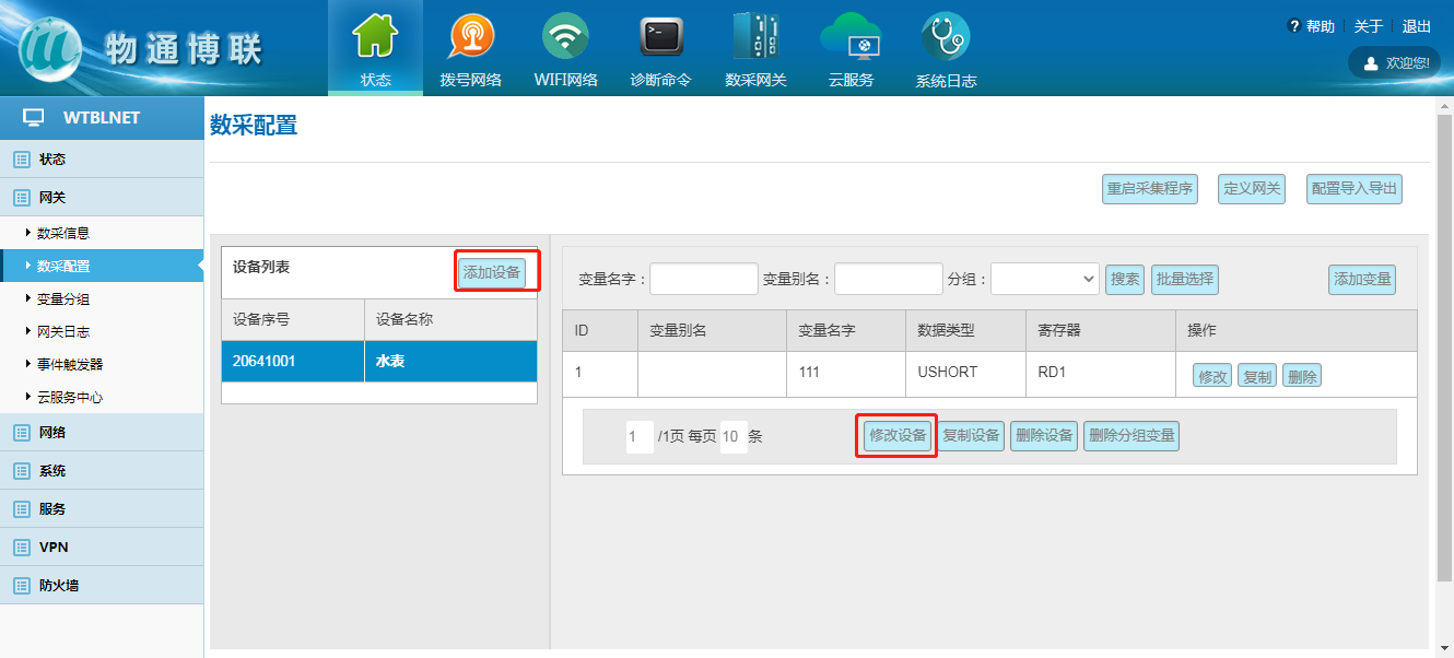 網(wǎng)關(guān)---數(shù)采配置---添加設(shè)備---添加變量---重啟采集程序并生效新的配置。