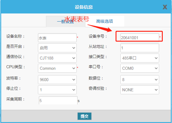 注:水表表號(hào)一定要填寫,其他的根據(jù)水表的參數(shù)進(jìn)行選擇。