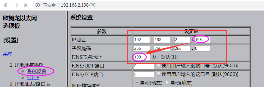 通過網線,連接PLC的CP1W-CIF41選件板網口與網關LAN口。