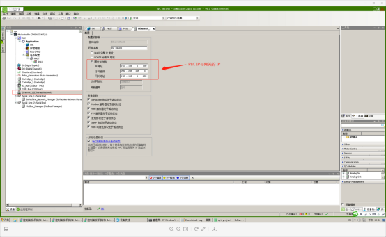 1、將施耐德控制器與電腦通過網線相接,打開施耐德控制器編程軟件(somachineM241),通過輔助軟件修改PLC的IP并設置施耐德控制器以太網參數,如下圖:(網關與PLC以1網段為例)