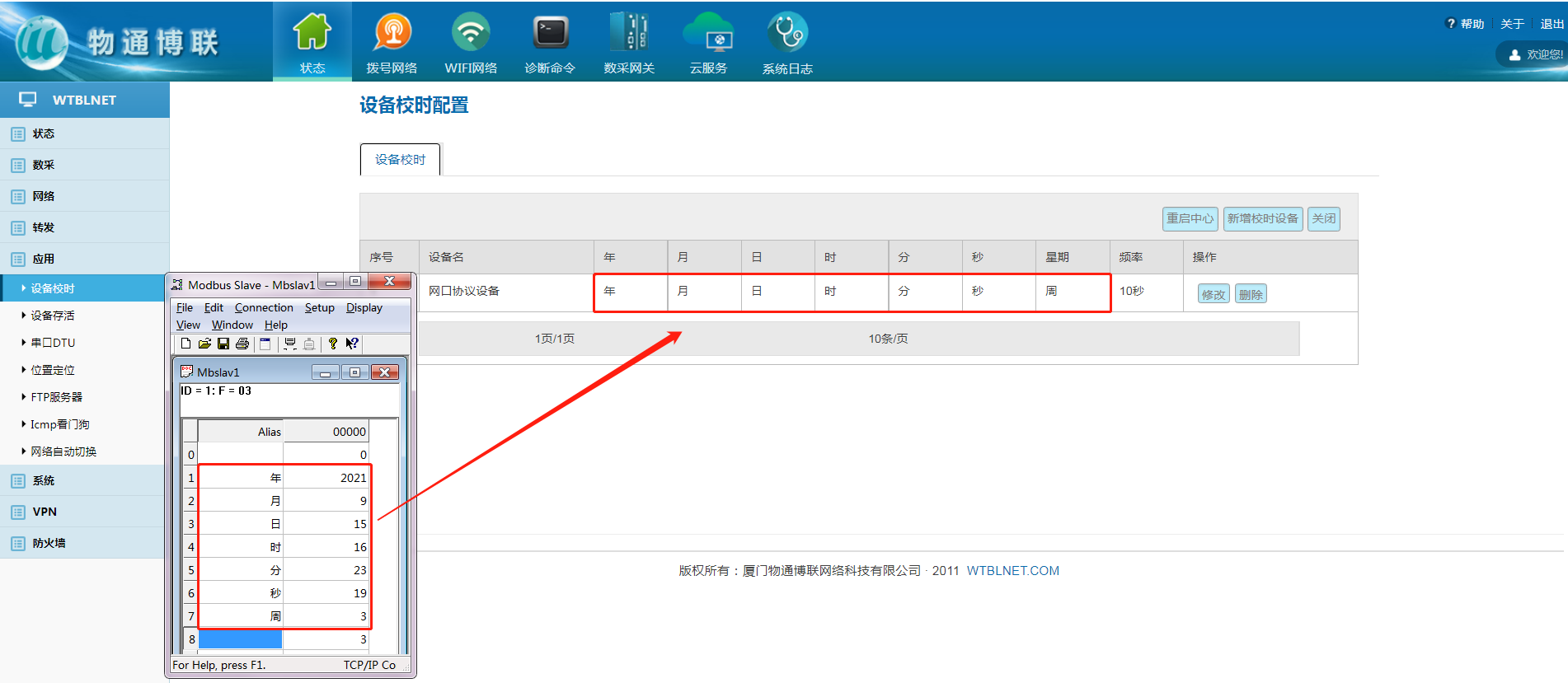 注:截圖使用Modbus Slave軟件模擬需要校時的設備。