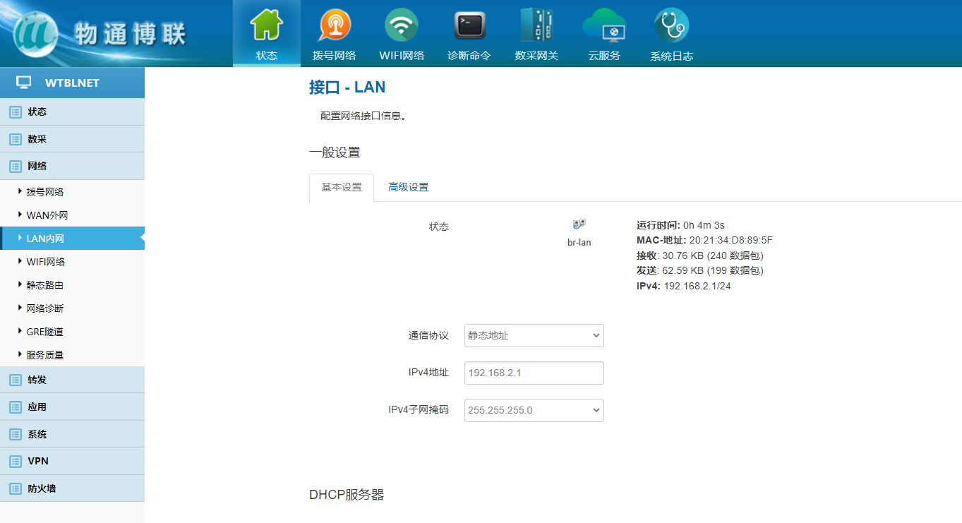 下載中心 視頻中心 常見問題 售后服務(wù) 工業(yè)網(wǎng)關(guān) 設(shè)備快線 數(shù)據(jù)云平臺 聯(lián)網(wǎng)設(shè)備 問答百科 如何修改工業(yè)智能網(wǎng)關(guān)的LAN口IP地址? 時間:2022-10-26 09:06:09 點(diǎn)擊:4869 關(guān)鍵詞:工業(yè)智能網(wǎng)關(guān),LAN口 問題:如何修改工業(yè)智能網(wǎng)關(guān)的LAN口IP地址? 回答: (1)電腦直連網(wǎng)關(guān),確保電腦與網(wǎng)關(guān)處于同網(wǎng)段或者自動獲取 瀏覽器里面輸入192.168.2.1 (2)登陸網(wǎng)關(guān)配置界面 默認(rèn)用戶名/密碼:admin/123456 (2)選擇網(wǎng)絡(luò)——Lan內(nèi)網(wǎng)——更改IPV4地址、子網(wǎng)掩碼,保存應(yīng)用 (3)注意電腦本機(jī)IP地址是否與更改地址處于同網(wǎng)段(自動獲取需重新拔 插網(wǎng)線) (4)瀏覽器輸入更改后的IP地址登陸到網(wǎng)關(guān)配置界面即修改成功 上一篇:工業(yè)智能網(wǎng)關(guān)和DTU有什么區(qū)別嗎? 下一篇: 工業(yè)智能網(wǎng)關(guān)需要另外配4G路由器嗎?