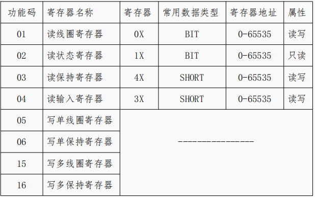 下載中心 視頻中心 常見問題 售后服務(wù) 工業(yè)網(wǎng)關(guān) 設(shè)備快線 數(shù)據(jù)云平臺 聯(lián)網(wǎng)設(shè)備 問答百科 網(wǎng)關(guān)采集modbus協(xié)議設(shè)備時(shí),寄存器類型和地址如何選擇? 時(shí)間:2022-10-26 09:39:53 點(diǎn)擊:6842 關(guān)鍵詞:工業(yè)網(wǎng)關(guān),數(shù)據(jù)采集,modbus,寄存器 問題:網(wǎng)關(guān)采集modbus協(xié)議設(shè)備時(shí),寄存器類型和地址如何選擇? 回答: (1)ModBus 功能碼與網(wǎng)關(guān)寄存器類型對應(yīng)關(guān)系 (2)偏移地址 以儀器儀表為例,Decimal為十進(jìn)制地址,Hex為十六進(jìn)制地址 網(wǎng)關(guān)僅支持十進(jìn)制的偏移地址,十六進(jìn)制需轉(zhuǎn)換十進(jìn)制 (2)采集演示 如設(shè)備支持modbus 協(xié)議03功能碼,偏移地址表如(2),則網(wǎng)關(guān)配置如下 上一篇:網(wǎng)關(guān)支持采集的數(shù)據(jù)類型有哪些? 下一篇: 網(wǎng)關(guān)需要將數(shù)據(jù)上報(bào)到物通博聯(lián)云平臺需要哪些配置?