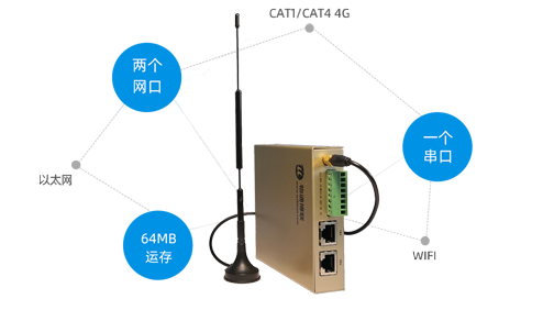 支持兩個網口,一個串口、支持4G、WIFI、有線以太網等多種聯網接入