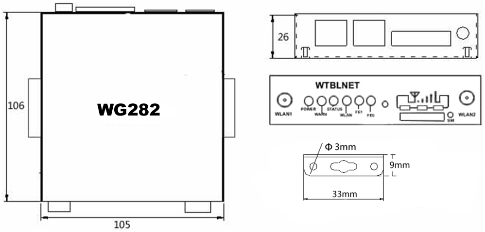 | 指示燈 | 1*6指示燈 | POWER電源燈(紅)、STATUS狀態燈(綠)、WARN警告燈(黃)、4G信號強度燈3個(藍) |