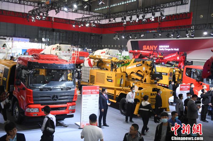 2021年5月19日,2021長沙國際工程機械展覽會上展出的工程機械產品。(資料圖片) 中新社記者 楊華峰 攝