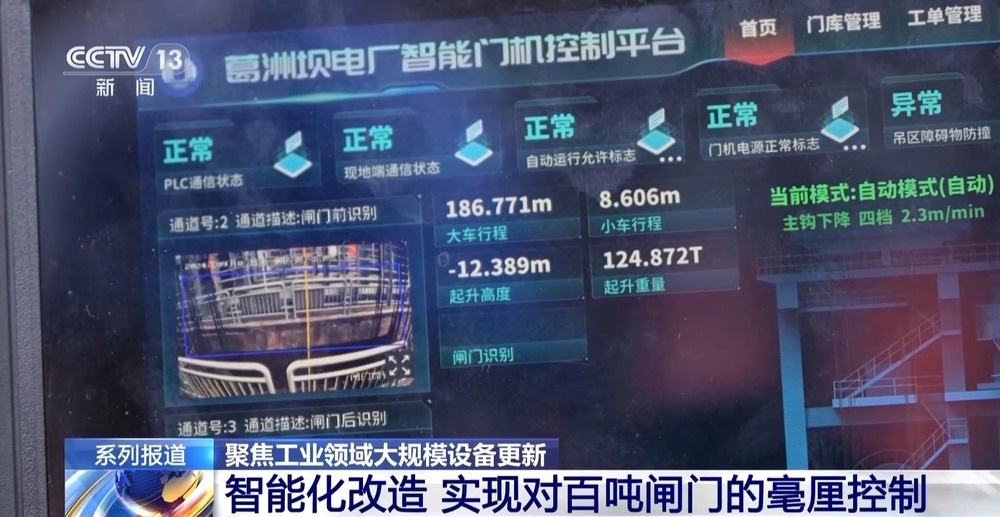 記者在葛洲壩二江電站機組進水口壩面看到,智能化改造的門機正在工作著,以往煩瑣的人工操作,眼下升級為全自動的智能模式。