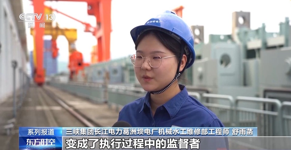 三峽集團長江電力葛洲壩電廠機械水工維修部工程師 舒雨菡:從傳統(tǒng)門機駕駛員,變成了執(zhí)行過程中的監(jiān)督者,這樣可以讓我從繁重的門機操作中解脫出來,結合我自己的專業(yè)能力將更多的工作重心放在創(chuàng)新研發(fā)上,用我們年輕人的力量來助力大國重器實現更多智慧轉型。
