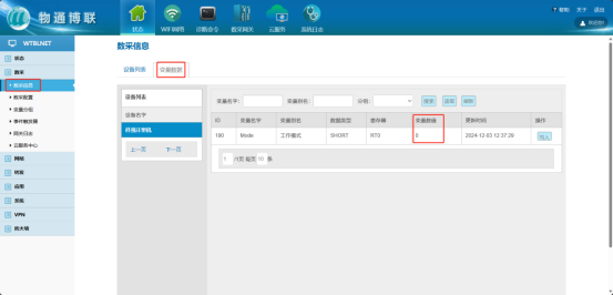 等待右下角彈出成功提示框后,點擊“數采信息”->“變量數據”,即可在“變量值”一列查看采集結果。