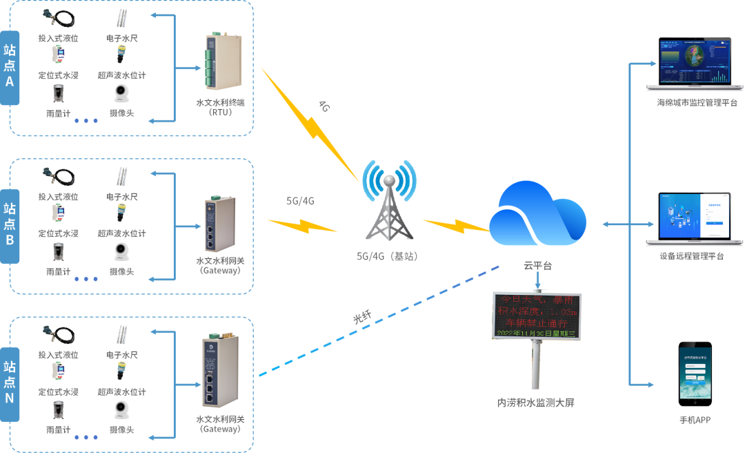 針對以上問題,物通博聯提出基于數采網關的城市道路積水智能監測管理系統解決方案。通過部署物通博聯數采網關,接入水位計、雨量筒、攝像頭等監測設備,實現對城市道路積水情況的實時、準確監測,并通過數據分析為管理部門提供決策支持。