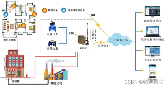 智慧供暖是物通博聯(lián)針對以上問題開發(fā)的工業(yè)物聯(lián)網(wǎng)方案。通過工業(yè)網(wǎng)關(guān)將供暖系統(tǒng)連接起來,對溫度、壓力、流量、開關(guān)量等等數(shù)據(jù)進行采集,實現(xiàn)遠程監(jiān)控、遠程控制和遠程維護。