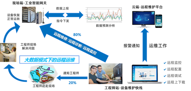 借助物聯(lián)網(wǎng)網(wǎng)關(guān)可以開通臨時的遠程維護通道,工程師就能遠程進行程序上下載,也能進行調(diào)試與升級,減少設(shè)備故障帶來的損失與浪費。