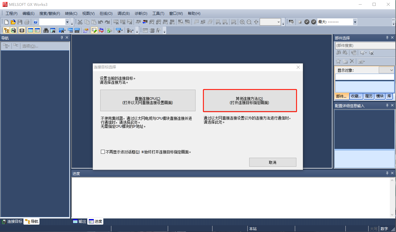 2、打開(kāi)MELSOFT GX Works3,選擇控制器系列,設(shè)置“其他連接方式”通訊。