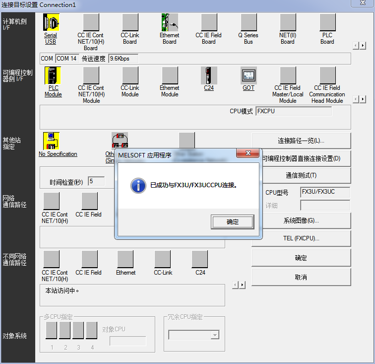 打開 MELSOFT系列 GX Works2,登錄 FX3UPLC,設(shè)置 FX3U 串口參數(shù),點(diǎn)擊“在線”——“PLC讀取”——“模塊參數(shù)”,具體設(shè)置見下圖: