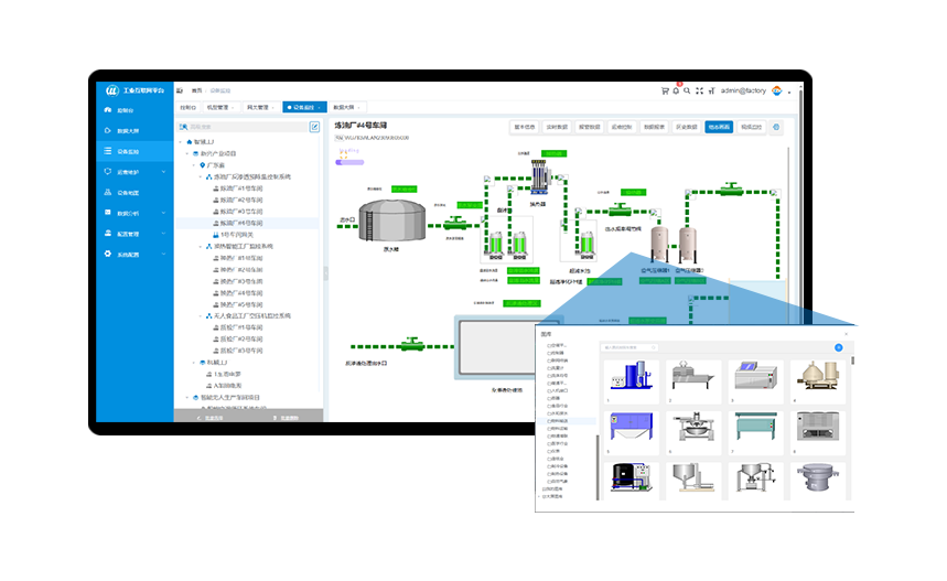 通過將網關的數據接入到物通博聯工業數據云平臺,可以實現對機器人的數據進行遠程監控,通過平臺的組態功能可以自由繪制組態監控畫面,實現電腦端和手機端的設備運行狀態和工藝流程的可視化組態監控。