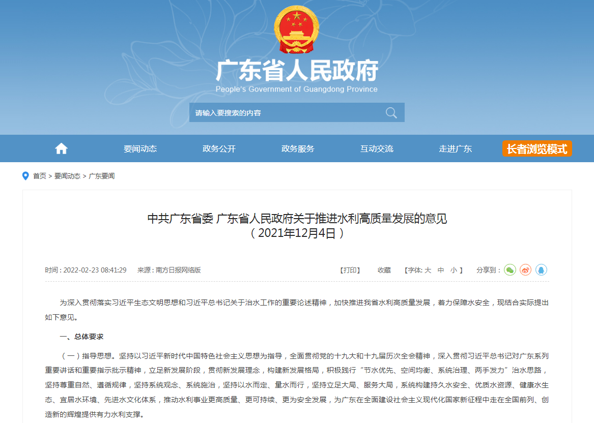 廣東省人民政府關于推進水利高質量發展的意見