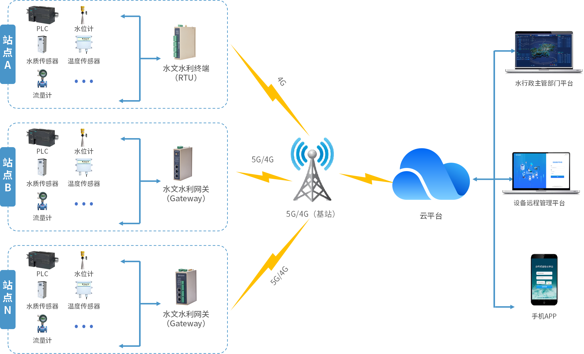 對此,物通博聯(lián)提供地下水在線監(jiān)測預警系統(tǒng)解決方案。地下水監(jiān)測井一般在野外,內(nèi)部包含水位計、流量計、水溫計、水質(zhì)監(jiān)測儀等傳感器,通過接入物通博聯(lián)水利水文網(wǎng)關(RTU)并通過5G/4G無線網(wǎng)絡遠程傳輸?shù)剿姓鞴懿块T平臺中,可以實現(xiàn)對水位、水量、水溫、水質(zhì)等多種參數(shù)的實時在線監(jiān)測、超限預警、智能管理等功能,為地下水監(jiān)測管理提供高效、精準、可靠的工作手段。