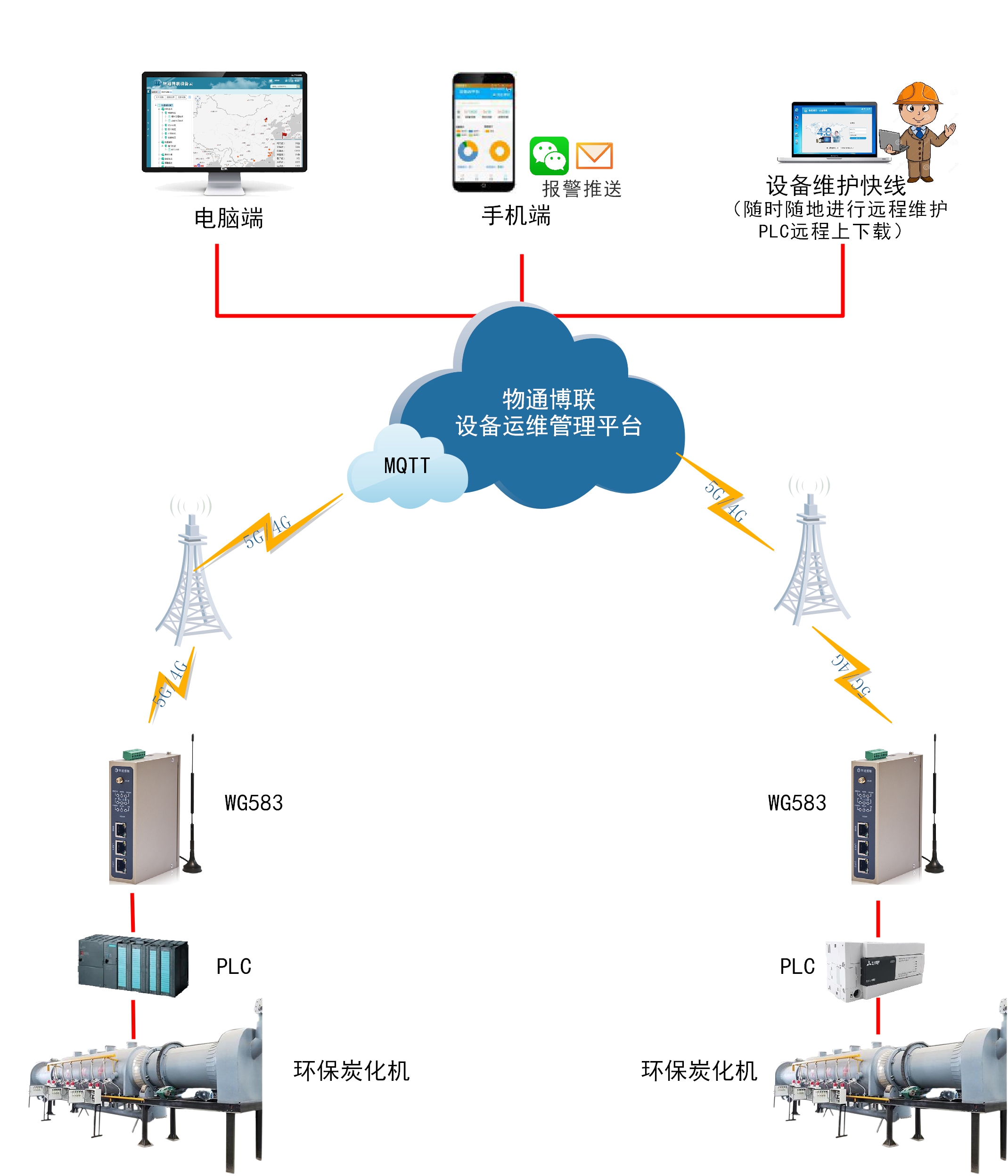 實時采集設備的運行/停止狀態、炭化爐溫度、煙氣溫度、煙氣流量、爐內壓力、風機狀態、冷卻水流量等數據,并在企業設備運維管理平臺實現可視化展示。